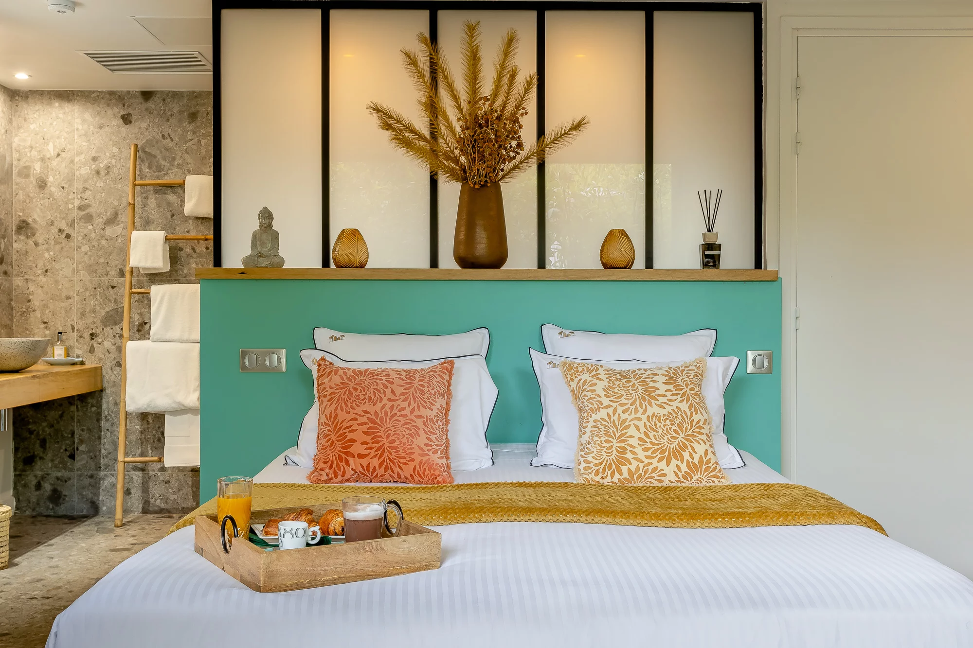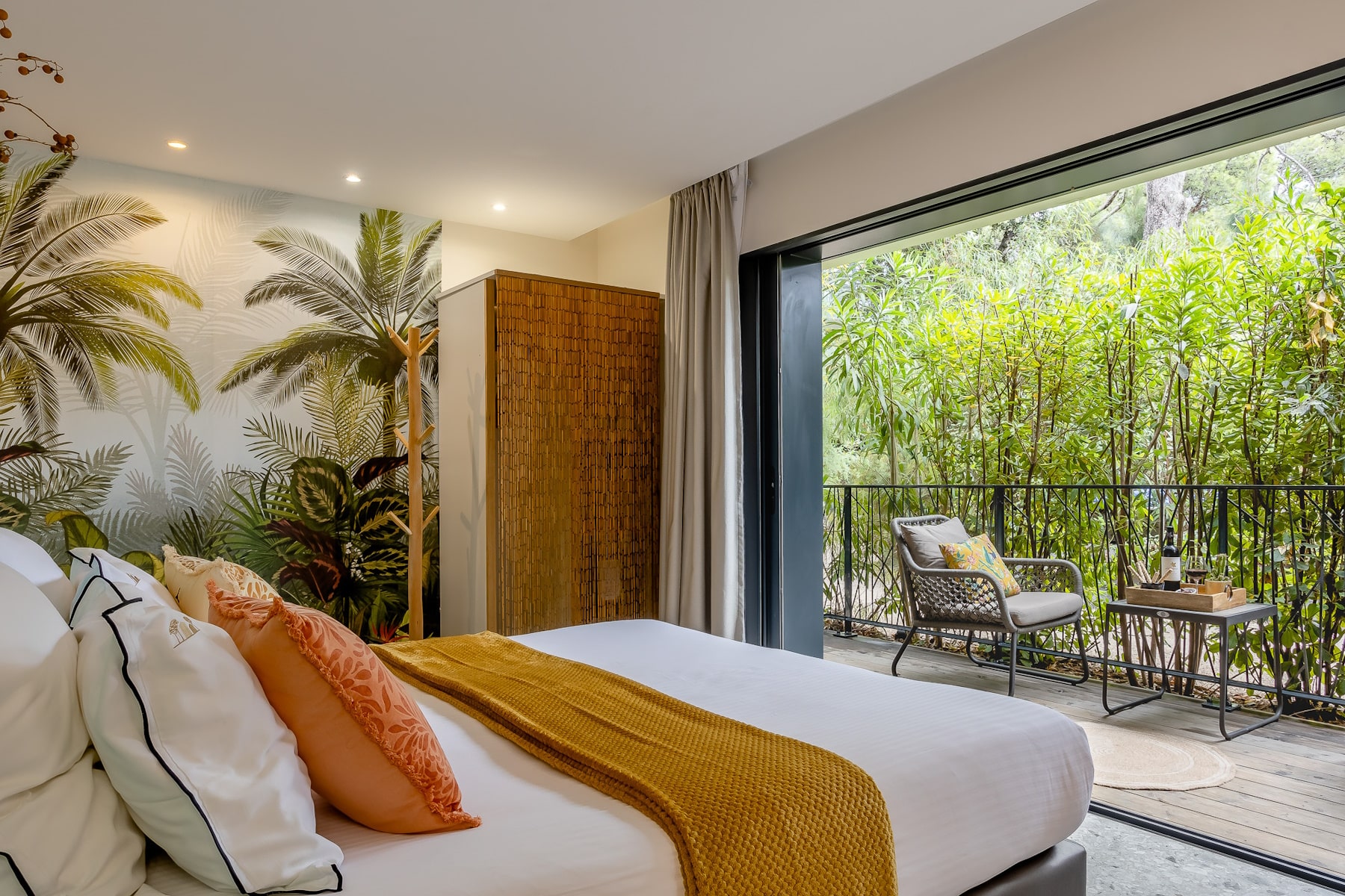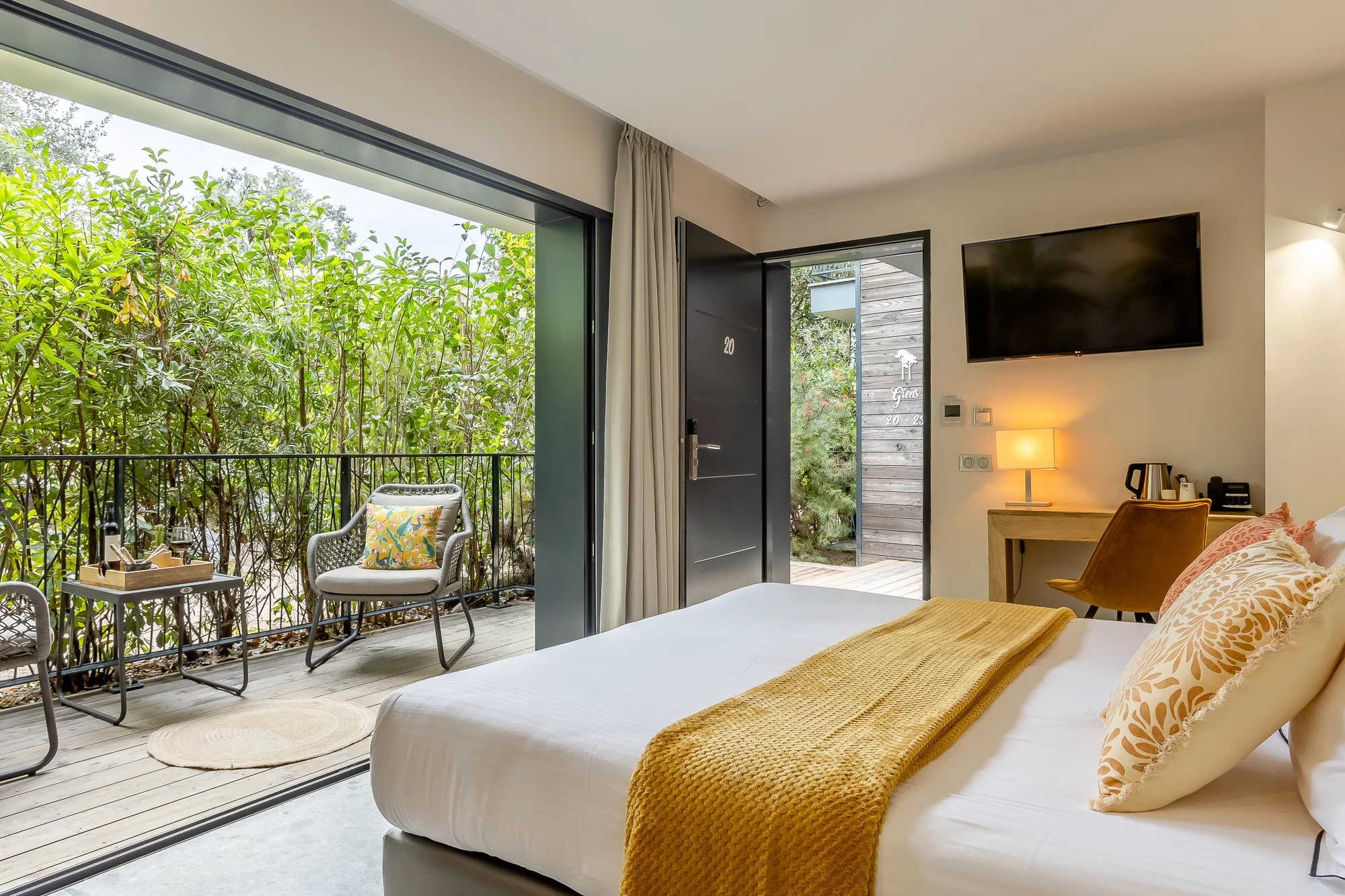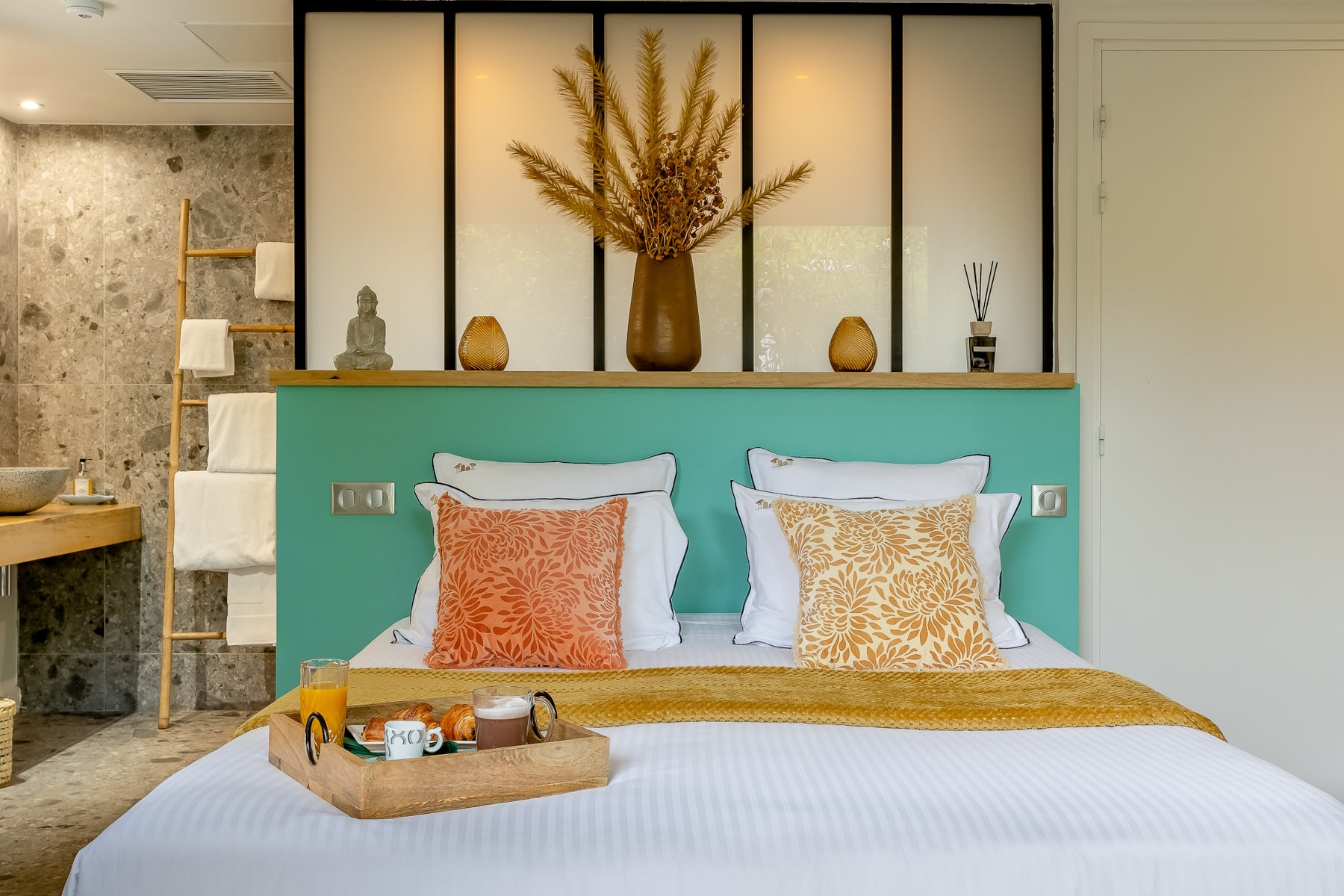 Nos 6 chambres « Deluxe » situées au deuxième et dernier étage, sont dotées d’une décoration soignée personnalisée qui invite au lâcher-prise et à la détente. Offrant une large vue sur la végétation luxuriante du jardin, les terrasses et la piscine chauffée.