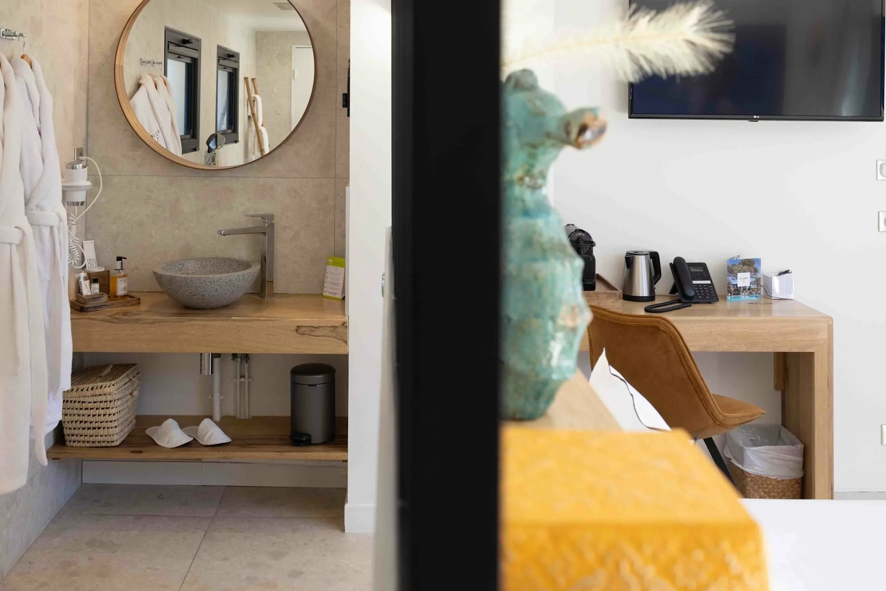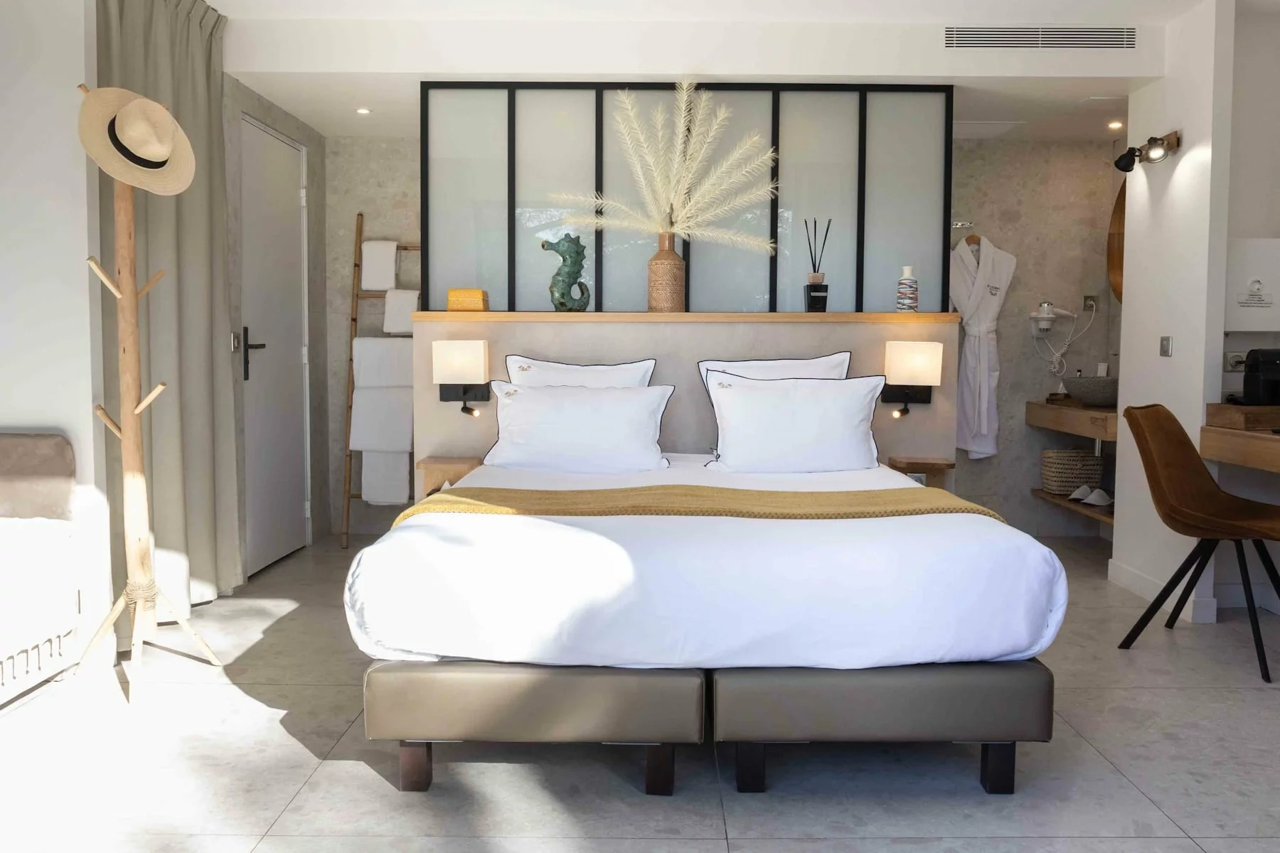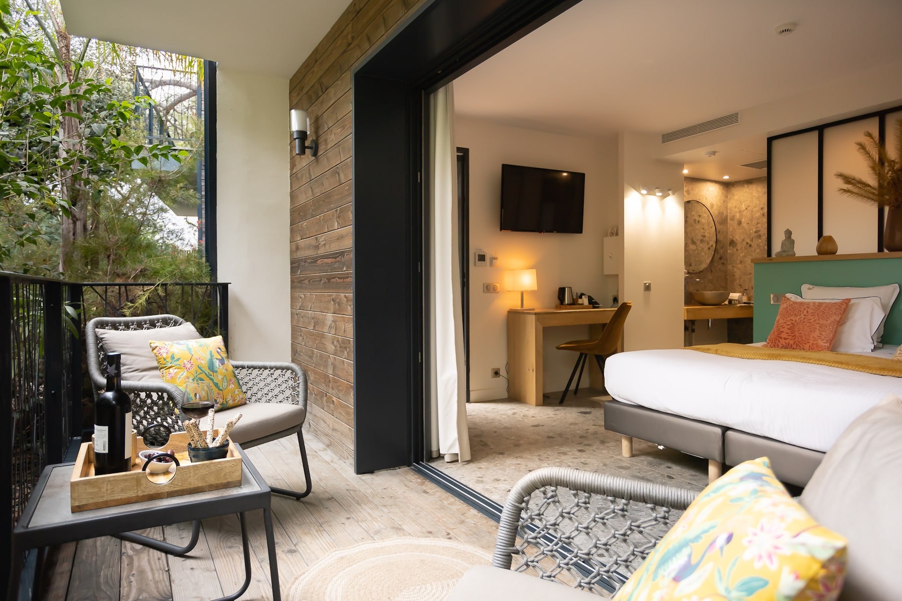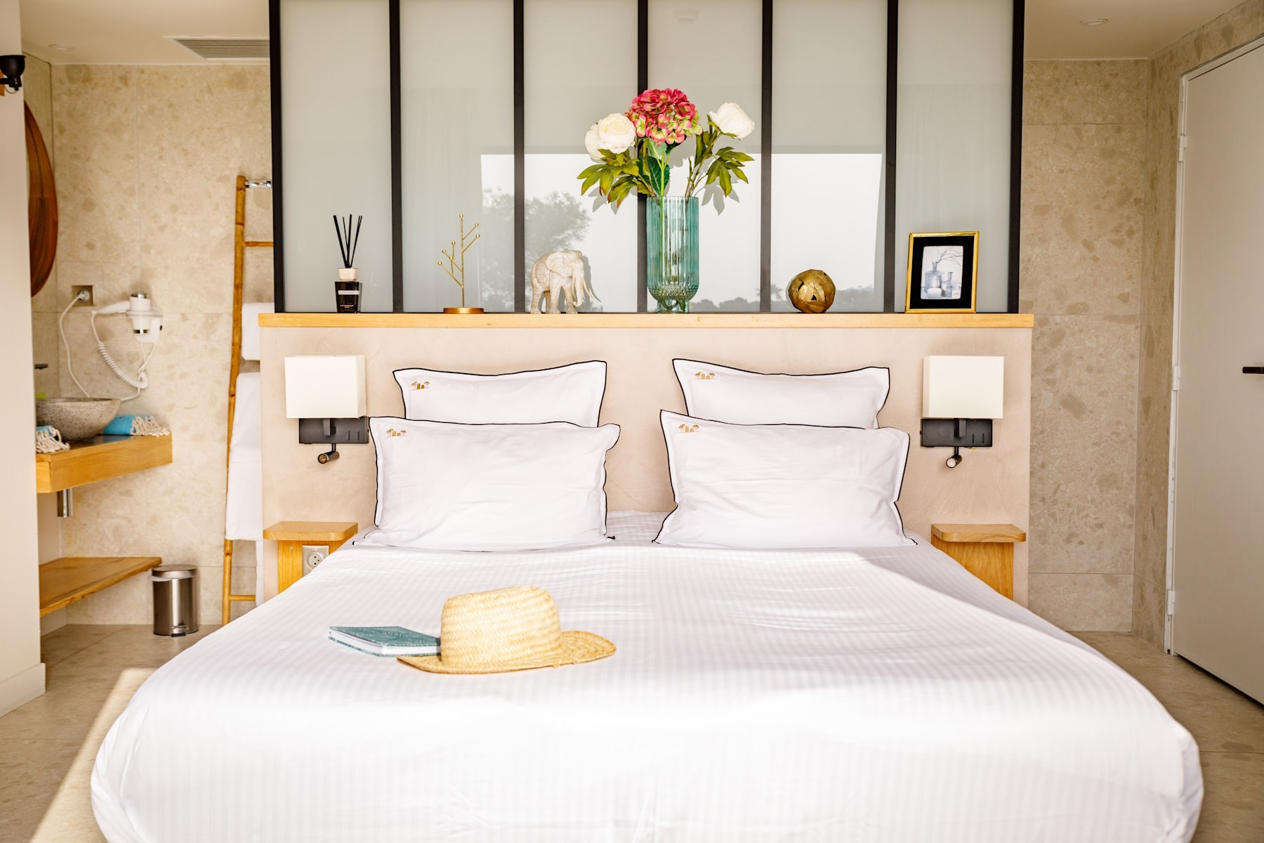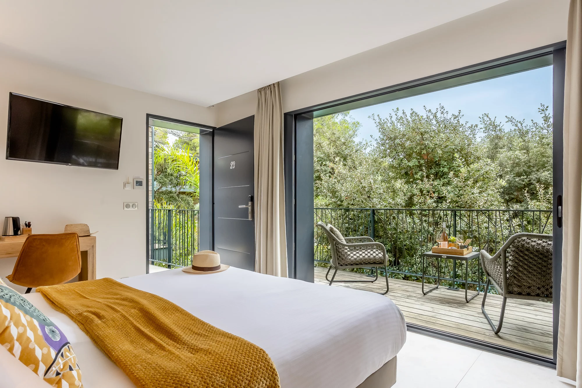 Nos 6 chambres « Deluxe » situées au deuxième et dernier étage, sont dotées d’une décoration soignée personnalisée qui invite au lâcher-prise et à la détente. Offrant une large vue sur la végétation luxuriante du jardin, les terrasses et la piscine chauffée.