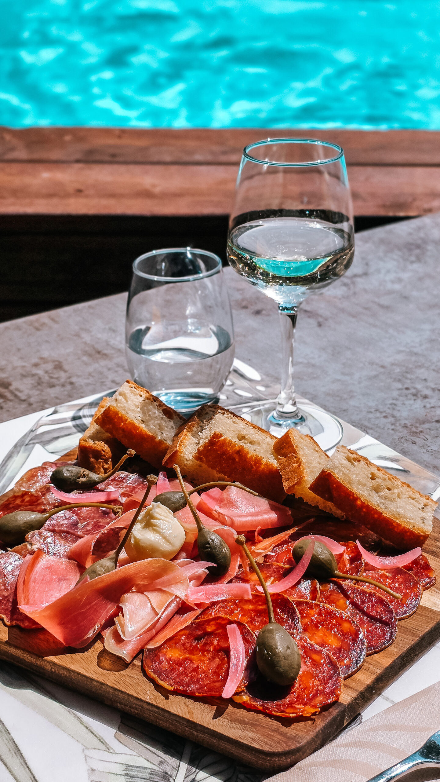 Confiture maison de figues noires de Solliès. Platter of Iberian bellota pata negra ham, homemade black fig jam from Sollies.